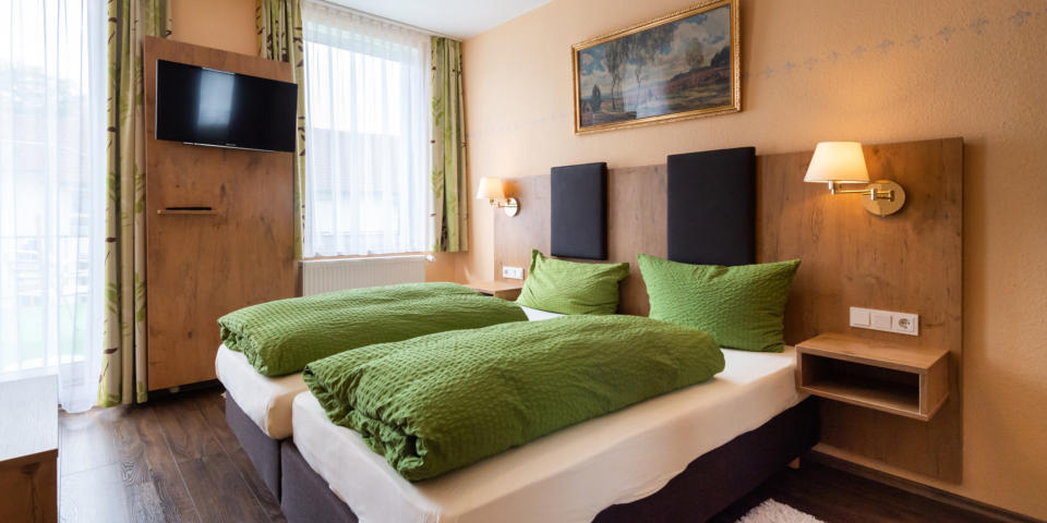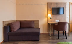 We have 2 categories with 17 double rooms and 7 (single) apartments.There are TV, shower and WC in every room and apartment.guesthousesaunaroom category